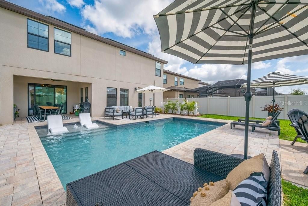 ARE YOU READY TO BE BLOWN AWAY? Welcome to WestBay's Avocet II, a stunning two-story residence offering just under 3,400 square feet of thoughtfully designed living space. This unforgettable home features 5 bedrooms, 3 bathrooms, a 3-car tandem garage, and a truly resort-style backyard. From the moment you step inside, you're eyes are immediately drawn to all of the wonderful appointments as you are enter an inviting foyer, flanked by a home office with French doors. As you continue back the home erupts to a spacious, open-concept main living area-dressed in wood look tile, perfectly balancing comfort and privacy. A secluded first-floor guest suite provides an ideal retreat for visitors or multigenerational living. The gourmet kitchen is a showstopper, complete with stone counters, a plethora of storage, natural gas appliances, tile backsplash, and a massive island overlooking the expansive dining and grand rooms. The space flows seamlessly to the covered lanai with views of your unforgettable pool & fully fenced backyard! Creating the perfect setting for entertaining or unwinding. Upstairs, you'll find a seriously ginormous bonus room, a luxurious owner's suite, and three additional bedrooms to suit your lifestyle needs. Step outside to your private oasis featuring a gunite pool with PebbleTec finish and tanning ledge, surrounded by a paver deck and lush tropical landscaping enclosed by a vinyl privacy fence. Additional highlights include 37 solar panels (saving you a lot of money - minimizing your utility and operational costs), a natural gas generator hookup, luxury vinyl plank and tile flooring throughout, designer lighting, 8-foot interior doors, stone countertops, upgraded cabinetry, a full irrigation system, and more. Located in the highly sought-after Hawkstone master-planned community in Lithia, residents enjoy exceptional amenities including a clubhouse, resort-style pool, parks, playgrounds, trails, ponds, and pickleball courts. Just minutes from the 969-acre Triple Creek Nature Preserve and Triple Creek BMX, with convenient access to US-301 and I-75, this practically brand-new home offers the perfect blend of luxury, comfort, and convenience. Be sure to see the attached list of upgrades and improvements. Schedule your private showing today-this one truly will not disappoint - You're Gonna LOVE IT!!