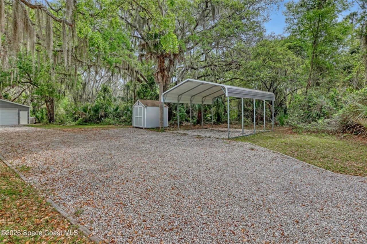 Tucked away on a spacious 1-acre lot in Mims, this delightful home blends cozy living with timeless charm. The inviting living space features beautiful shiplap walls that add texture and character, perfectly complemented by a stylish electric fireplace that creates a cozy focal point for relaxing evenings. Step outside and you'll find plenty of room to enjoy the outdoors. With its combination of modern touches and rustic appeal, this home offers a peaceful escape while still feeling connected and livable. 24x24 detached garage, 20x20 carport and water softener system. Close to the Space Center, I-95 beaches restaurants and more! CASH ONLY!